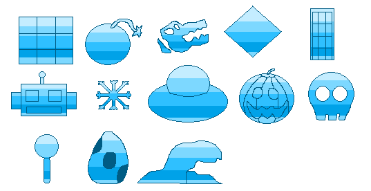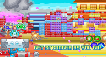 Amidst your destruction, blocks with silhouettes will fall. These are power-ups that you can use once the platform (Rob) touches them.